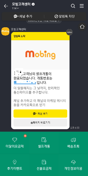 셀프 개통하려고 모빙 유심 2,200원 결제했고