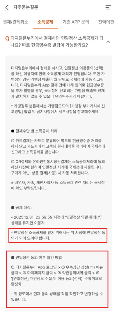 - QR 결제 전 연말정산 동의 체크 필수